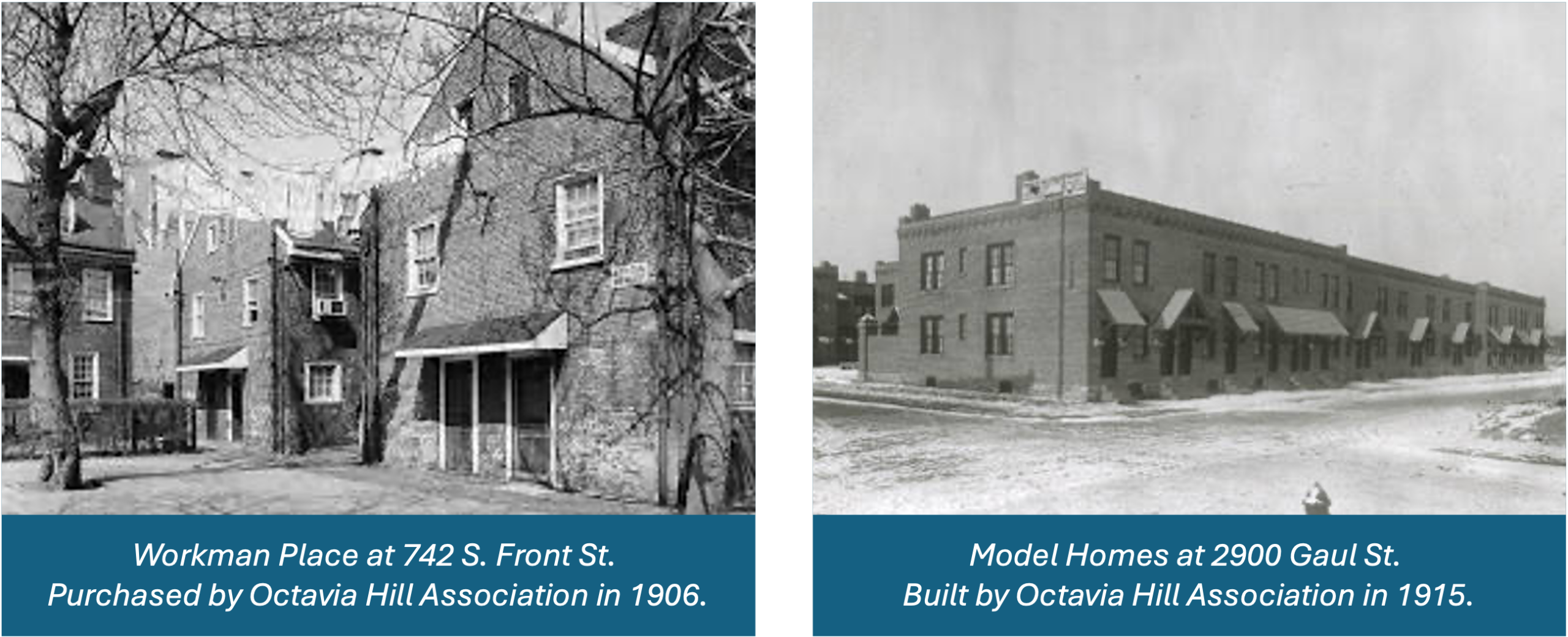 The Octavia Hill Association’s story began in 1896 and continues 130 years later. Activists in Philadelphia looked across the Atlantic to the groundbreaking work of Octavia Hill, a pioneer of British housing reform. Hill felt that if we could change the environment by improving housing and building parks, playgrounds, and better schools, we could eventually eliminate poverty. Through a revolutionary approach, Hill combined her charitable work with a for-profit business, which inspired Philadelphia’s Octavia Hill Association’s tagline “Philanthropy and Four Percent”, and provided both charitable work with a small profit for investors. Hill also inspired the concept of the “friendly rent collector”, which were some of the earliest social workers.